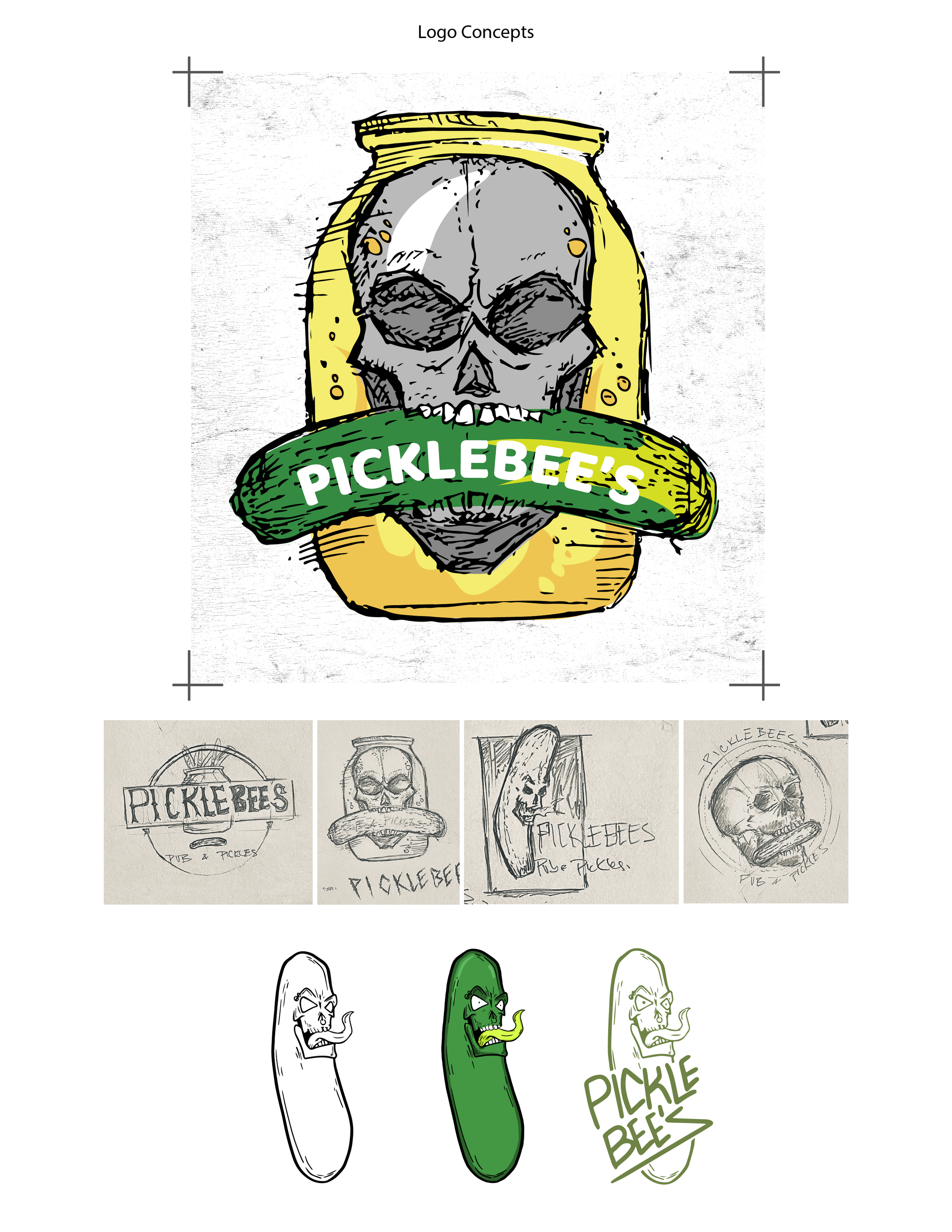 Flyer design, logo concept & brand guide pages. Picklebee’s unchosen logo and brand concept.