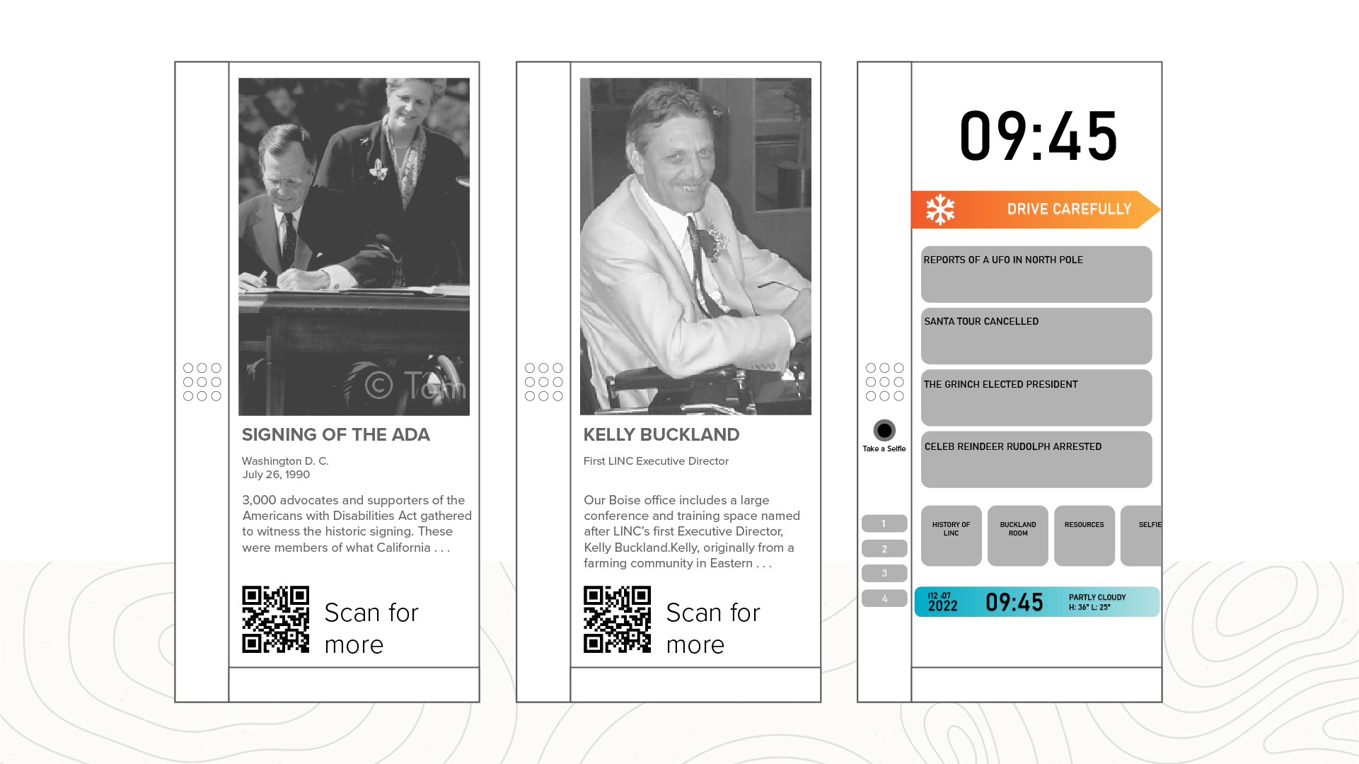 Sample screen UI for the state-of-the-art interactive display. Key people and events have been populated here as an example.