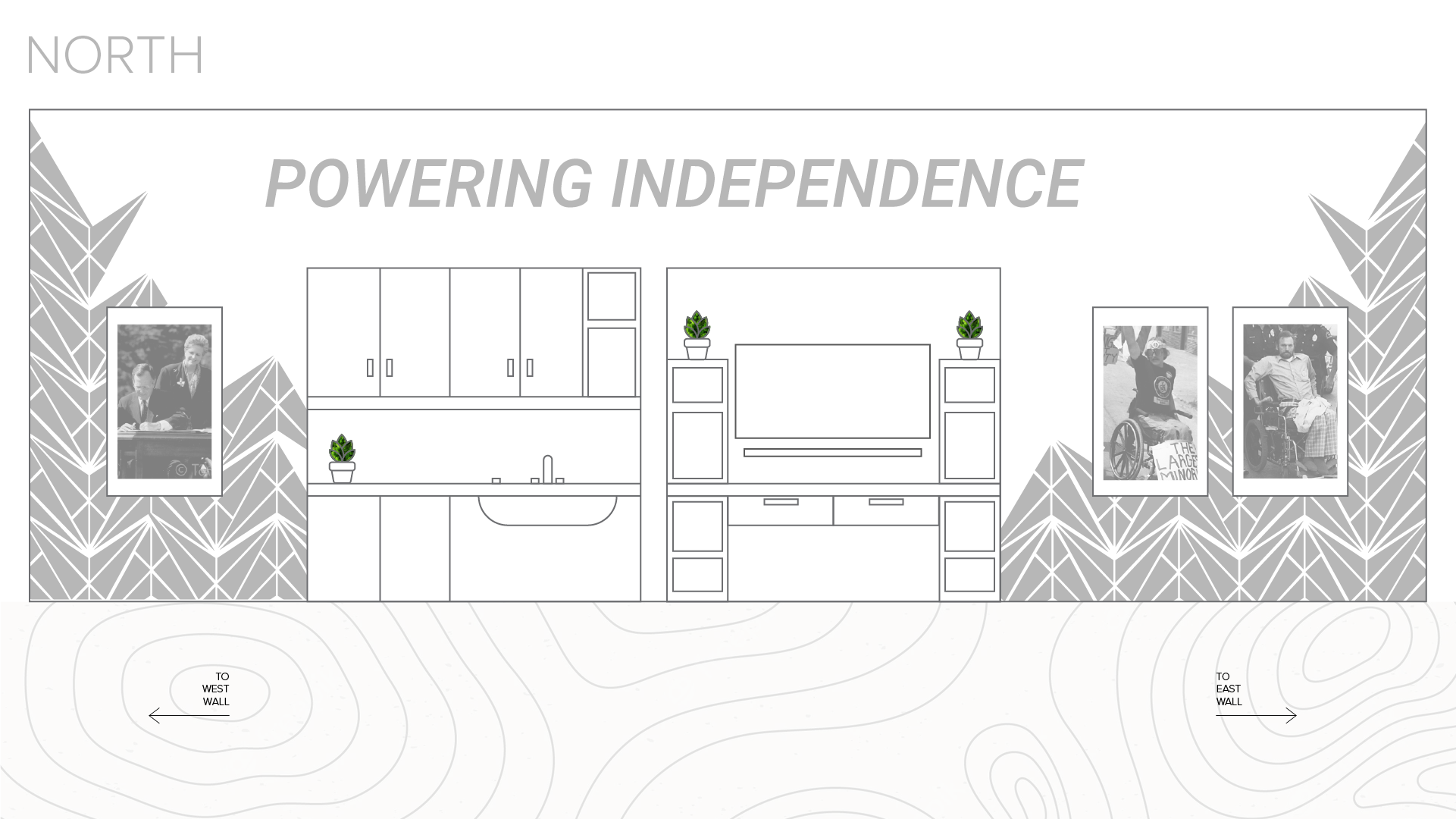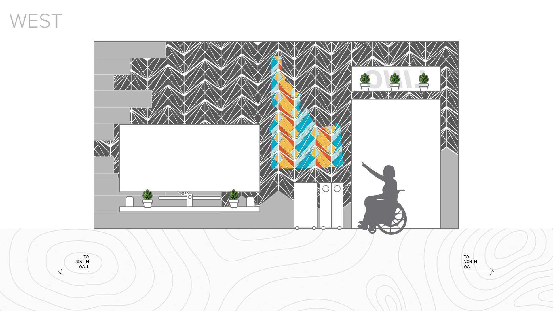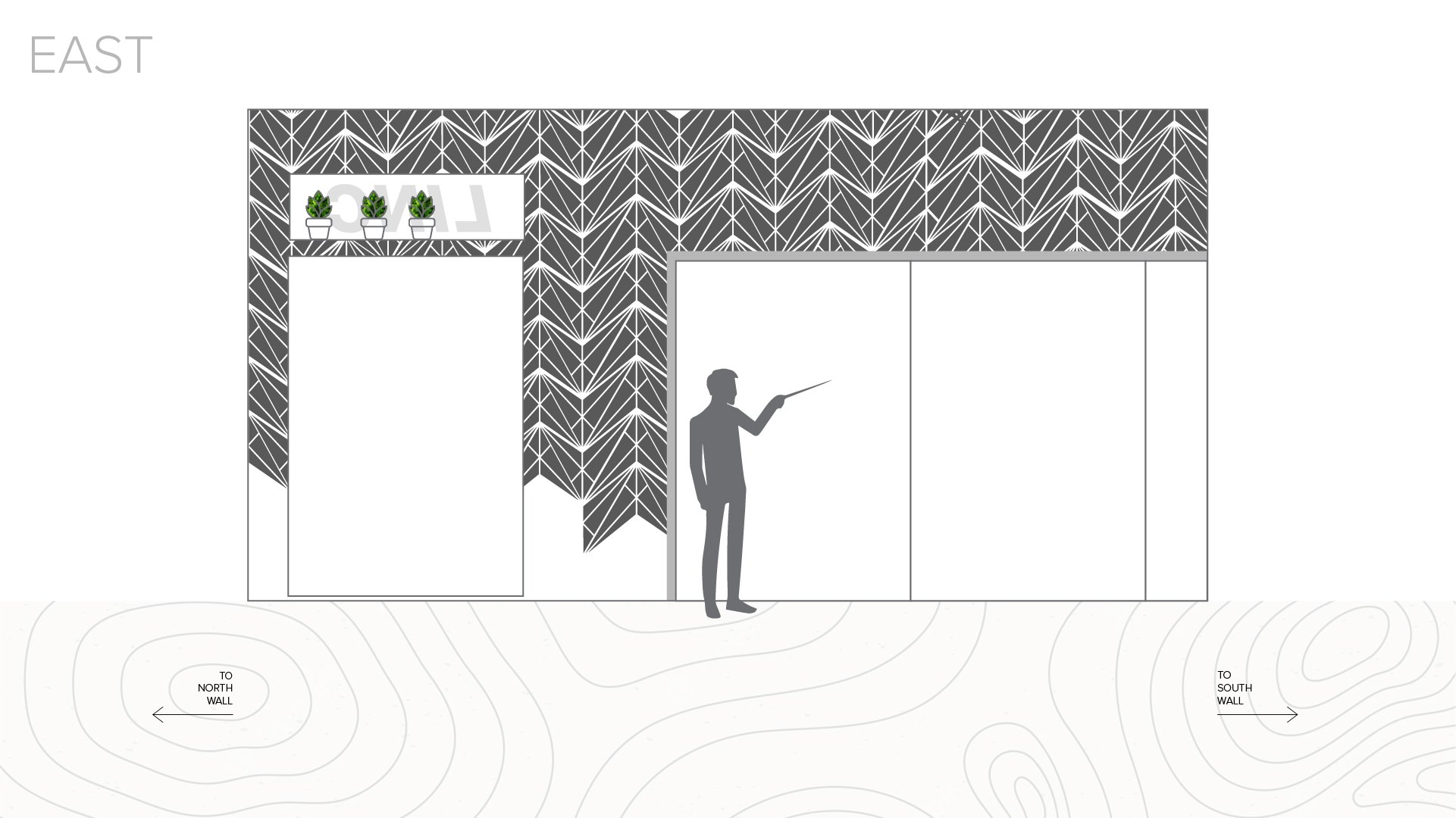Explore our concepts below, each image may correspond with one of the cardinal directions labeled east, north, south, and west. This is to help viewers orient themselves with the layout of the Buckland Conference Room.