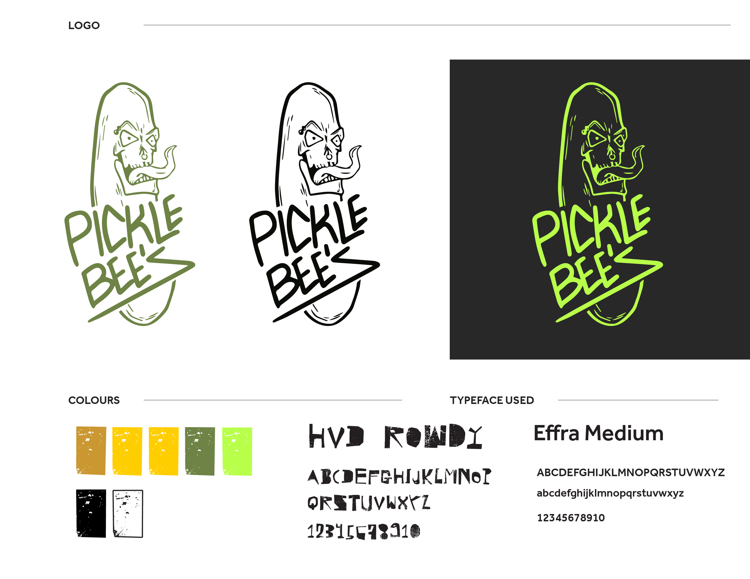 Flyer design, logo concept & brand guide pages. Picklebee’s unchosen logo and brand concept.
